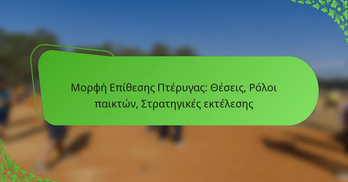 Η διάταξη επίθεσης πτέρυγας είναι μια στρατηγική ρύθμιση σε ομαδικά αθλήματα που έχει σχεδιαστεί για να βελτιστοποιεί τις επιθετικές ενέργειες εκμεταλλευόμενη τις εξωτερικές περιοχές του γηπέδου. Εστιάζοντας στη θέση και την κίνηση των παικτών, αυτή η διάταξη ενισχύει την κίνηση της μπάλας και δημιουργεί ευκαιρίες για σκοράρισμα μέσω καλά καθορισμένων ρόλων και στρατηγικών εκτέλεσης.